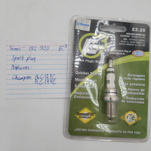 Stens E3Replacement Spark Plug   Replaces: Champion: RC12YC, RC14YC